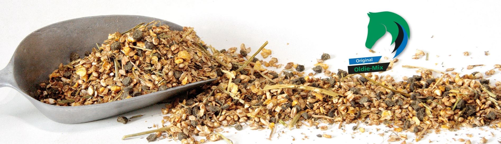 Obsah krmiva byl speciálně adaptován na potřeby starších koní. Díky vysokému obsahu glukózy a slunečnicového oleje krmivo dodává rychle potřebnou energii a je vhodné i pro koně, kteří nelehce příjimají potravu. Dále také slunečnicový olej zaručuje bezprašnost krmiva, tudíž je Oldie-Mix vhodný také pro alergické koně. Krmivo je díky tomu, že neobsahuje granule lehce poživatelné pro koně, kteří mají například problémy se zuby.