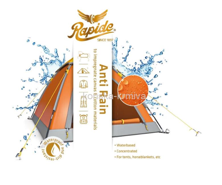 Rapide Anti Rain liquid je velmi kvalitní přípravek, který učiní materiály vodě odolnými. Chrání textilie z bavlny, plátna a směsných materiálů nejen proti vodě, ale i nečistotám a mastnotě. Je rychlý, snadno použitelný a velmi účinný.