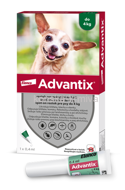 Advantix spot-on do 4kg je vhodný pro malá plemena psů vážící do 4 kg (1 pipeta).