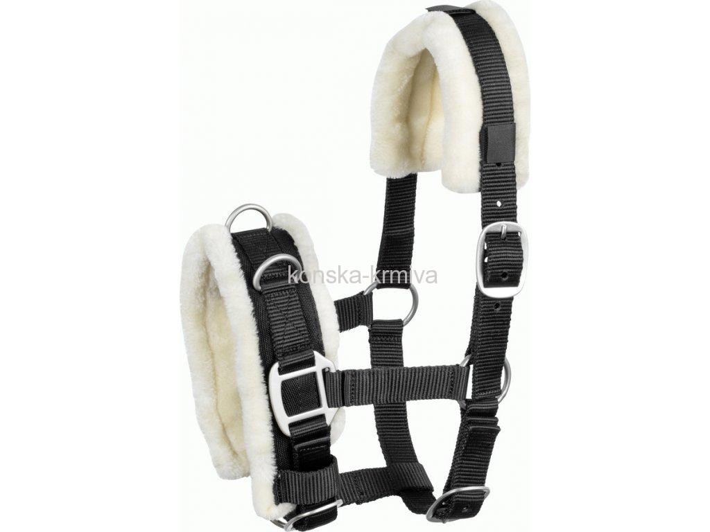 Je nastavitelný jak na nánosníku, tak na nátylníku. Beránka na nátylníku je možné odstranit pomocí suchých zipů. Na nánosníku jsou 3 kroužky (uprostřed a po stranách). Spony, kroužky a přezky jsou z chromované oceli.